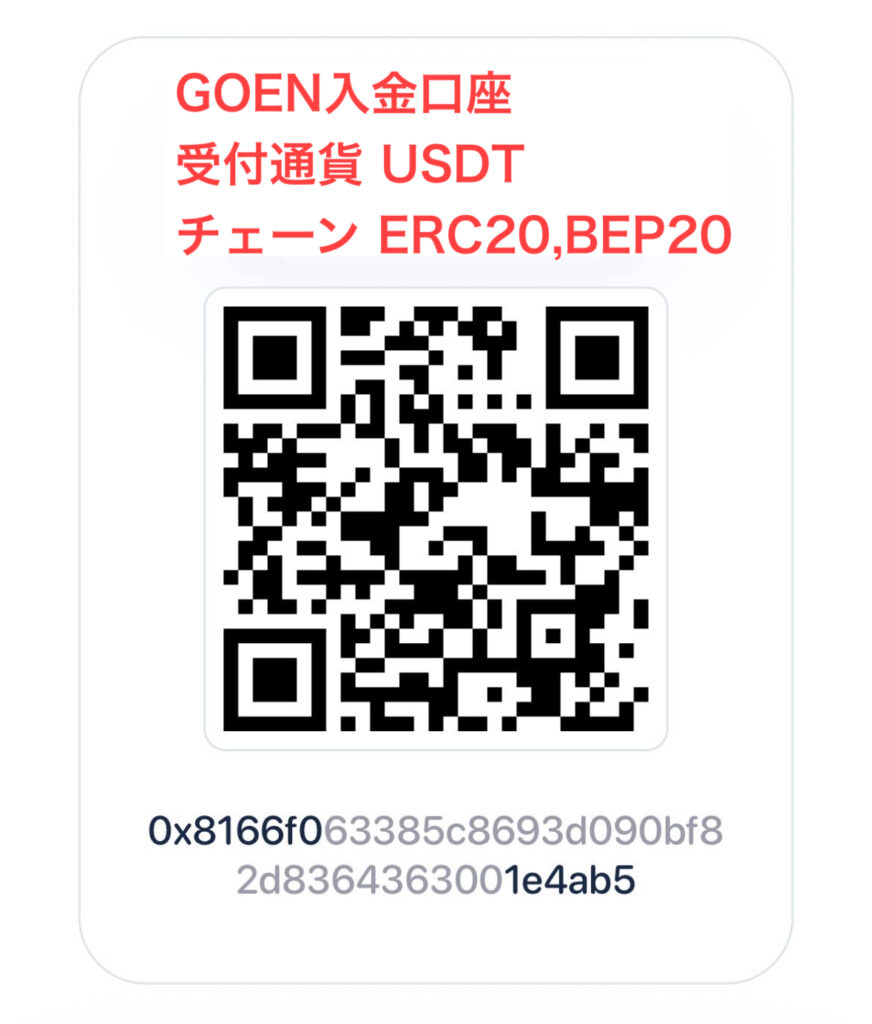 GOEN入金用口座宛にブロックチェーンネットワークを用いて送金をお願いします。